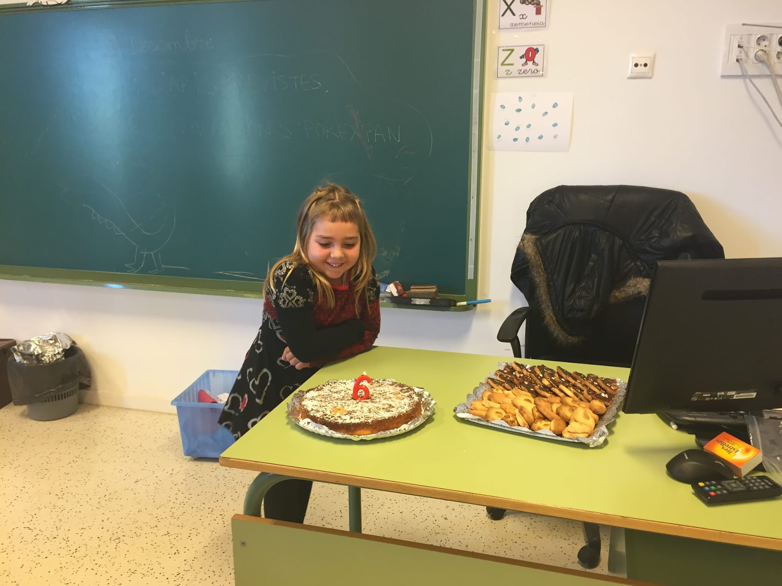 La nostra amiga Mireia ha fet 6 anys. Ens ha convidat a coca i a crespells, boníssims! Gràcies i moltes felicitats confitet.